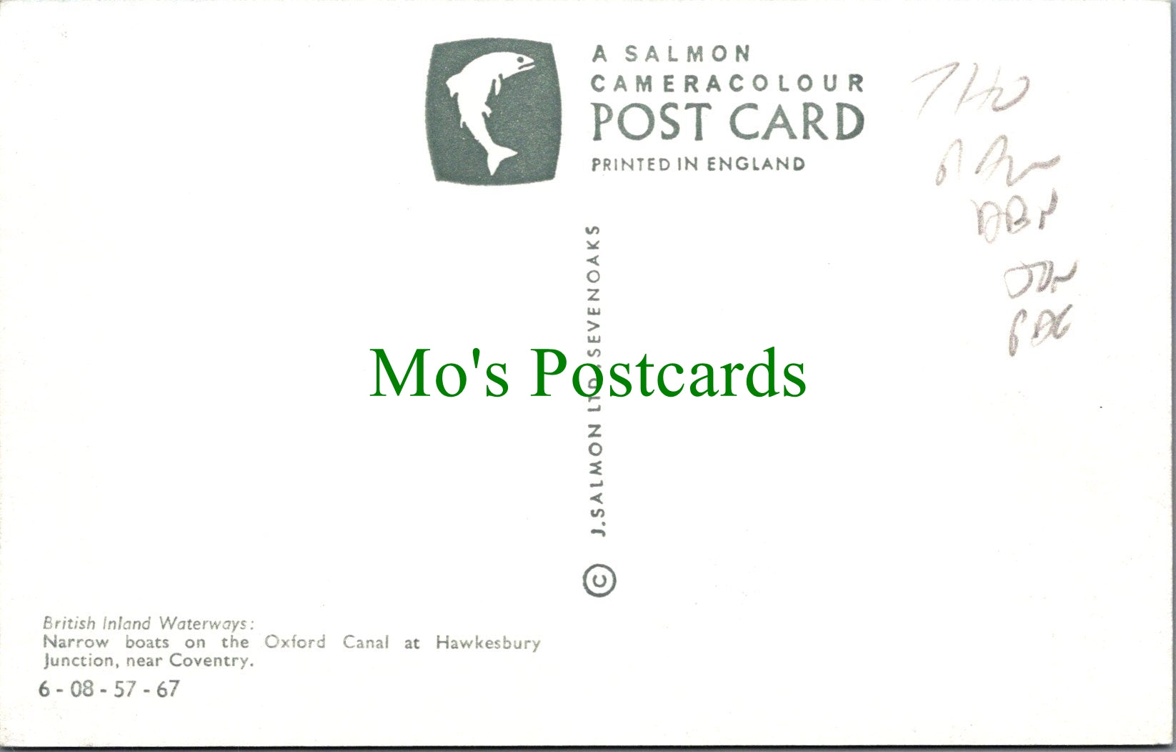 All of our postcards are posted to you inside a plastic sleeve and a board backed envelope which will be marked 'Please do not bend'. The 'Mo's Postcards' watermark does not appear on the actual postcard'.