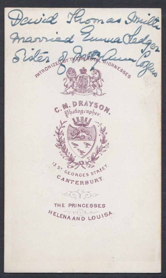 Carte De Visite Description:   CDV (Carte De Visite) - David Thomas Smith Married Emma Ledger Sister of Mary Ann Cozens - C.M.Drayson, 13 St Georges Street, Canterbury