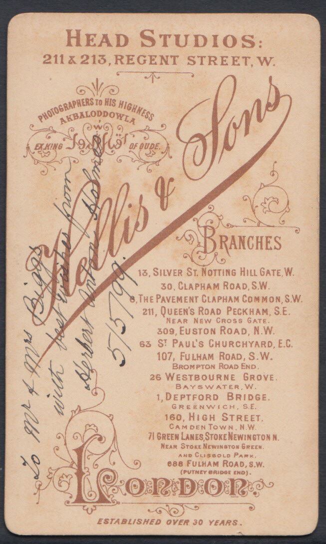 Carte De Visite Description:    CDV (Carte De Visite) - London Man Called Herbert Anton Holmes on the 5th May 1899 - Sent To Mr & Mrs Biggs -  Hellis & Sons, London