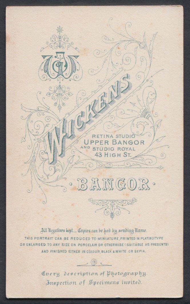 Carte De Visite Description: CDV (Carte De Visite) - Portrait of a Bangor Man Called Dan.F.Griffiths - Wickens, Retina Studio, Upper Bangor & Studio Royal, 43 High Street, Bangor