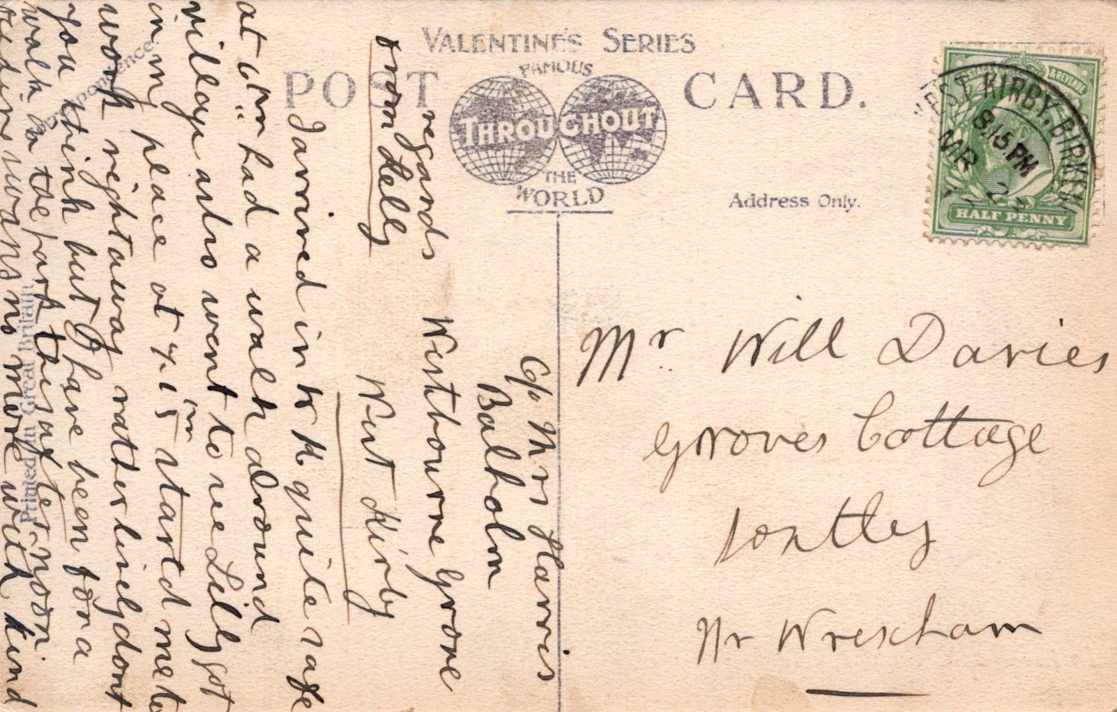 Postcard size:  Standard. Posted in 191?