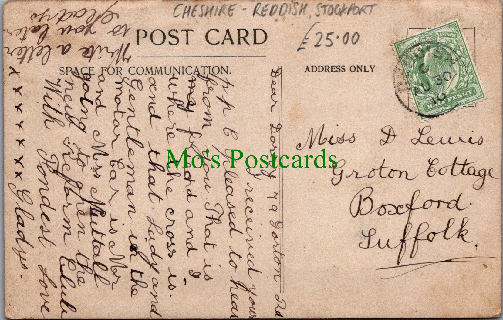 All of our beautiful postcards are posted to you inside a plastic sleeve and a board backed envelope which will be marked 'Please do not bend'. The 'Mo's Postcards' watermark does not appear on the actual postcard'.