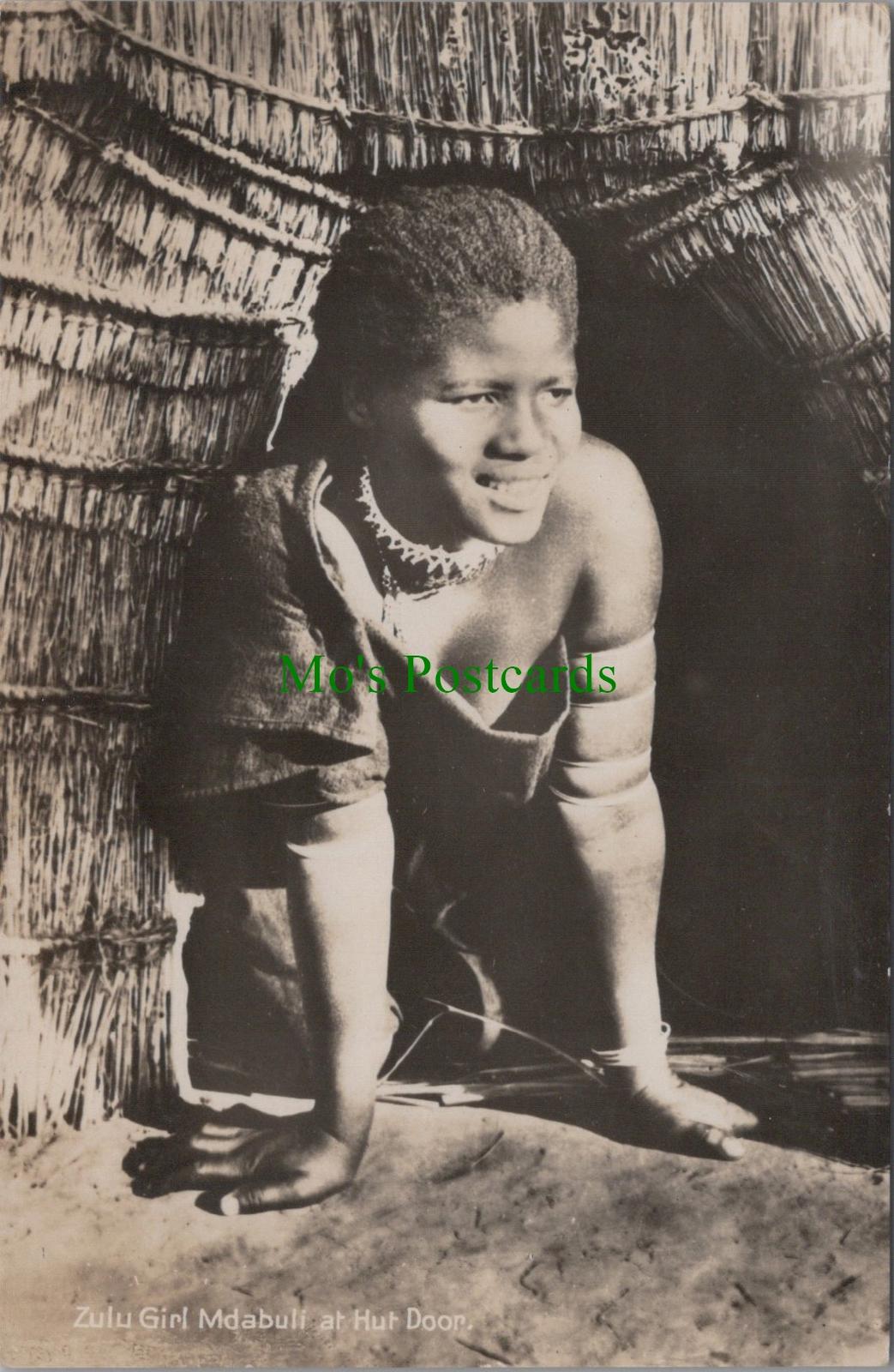Mo's Ref:   Africa Postcard - Zulu Girl Mdabuli at Hut Door  RS35795