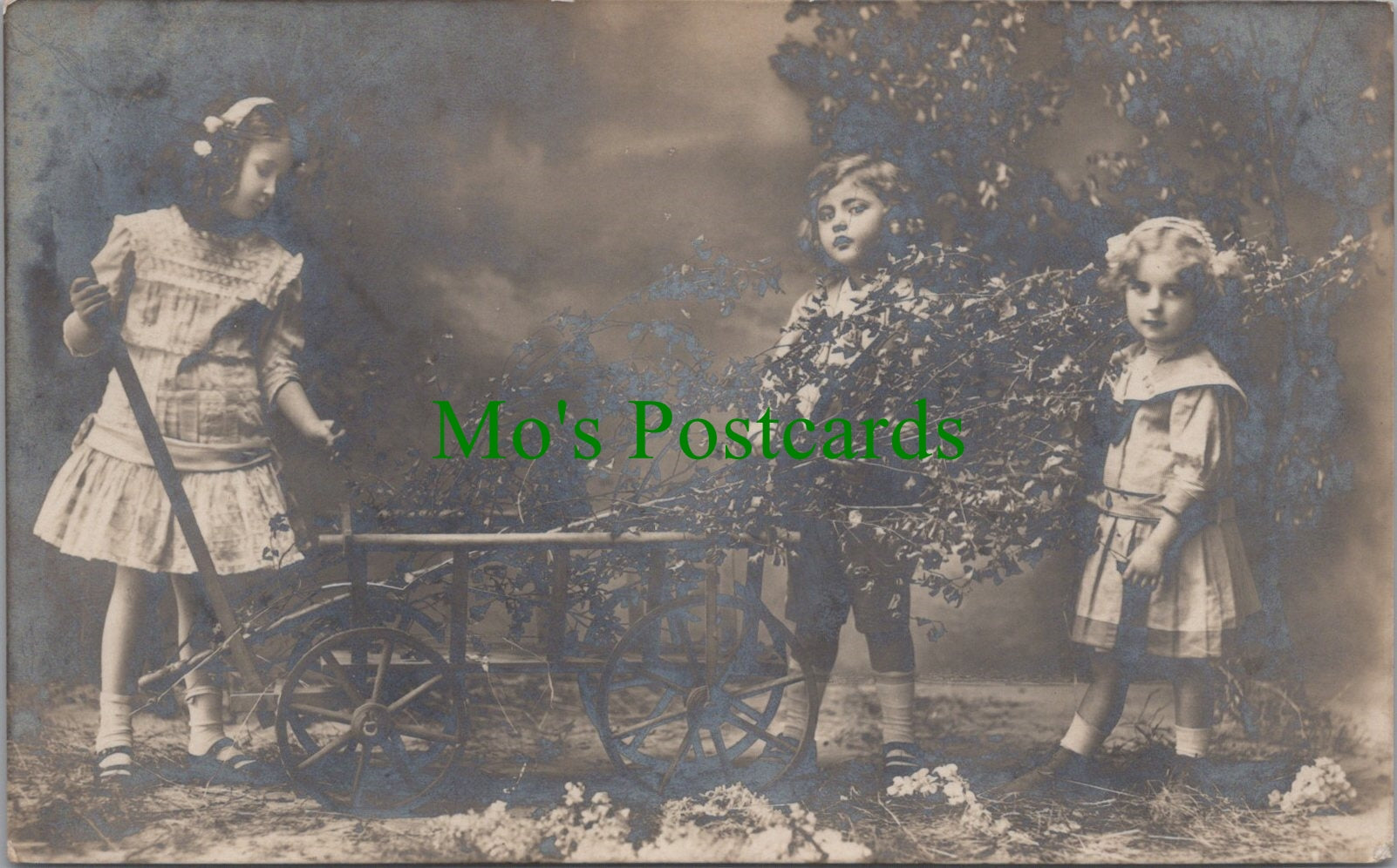 Mo's Ref:  Children Postcard - Three Children With a Hand Cart and a Tree SW12703