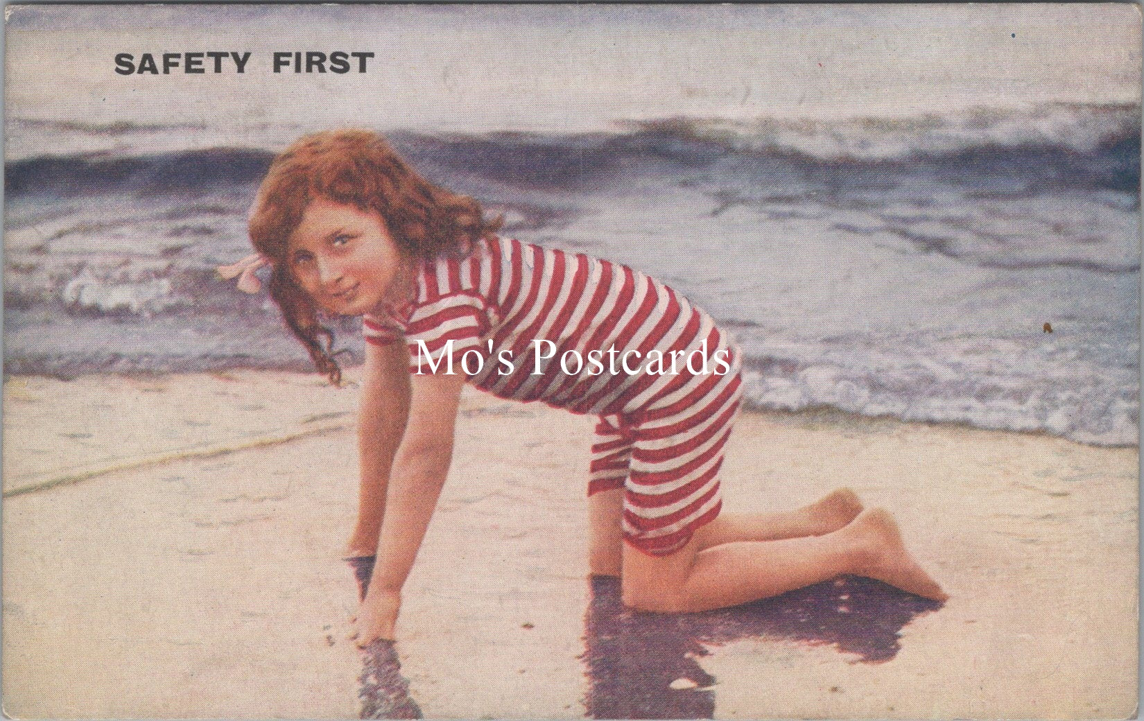 Mo's Ref:  Children Postcard - Young Girl at The Beach, Safety First  SW17418