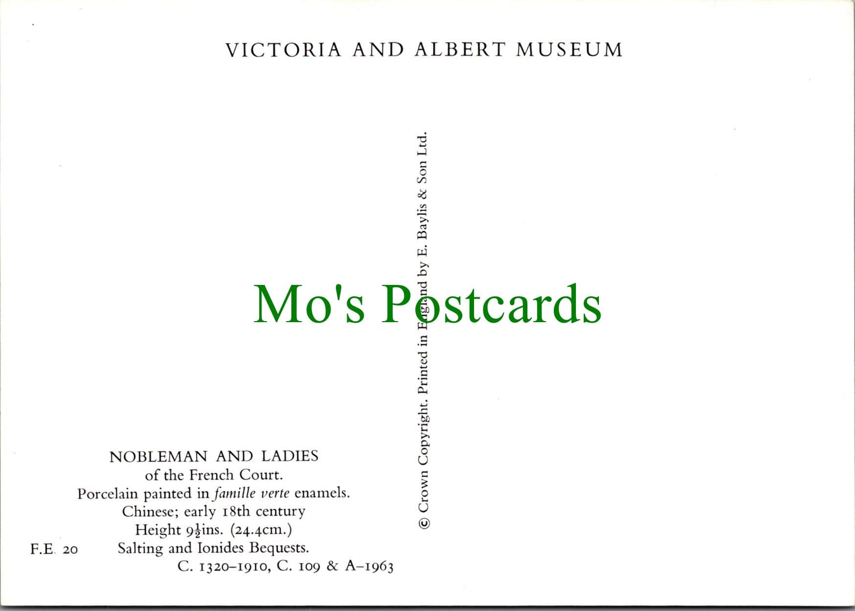 Mo's Postcards offers for sale a China Postcard - Nobleman and Ladies Porcelain Painted in Famille Verte Enamels. Chinese. Early 18th Century.