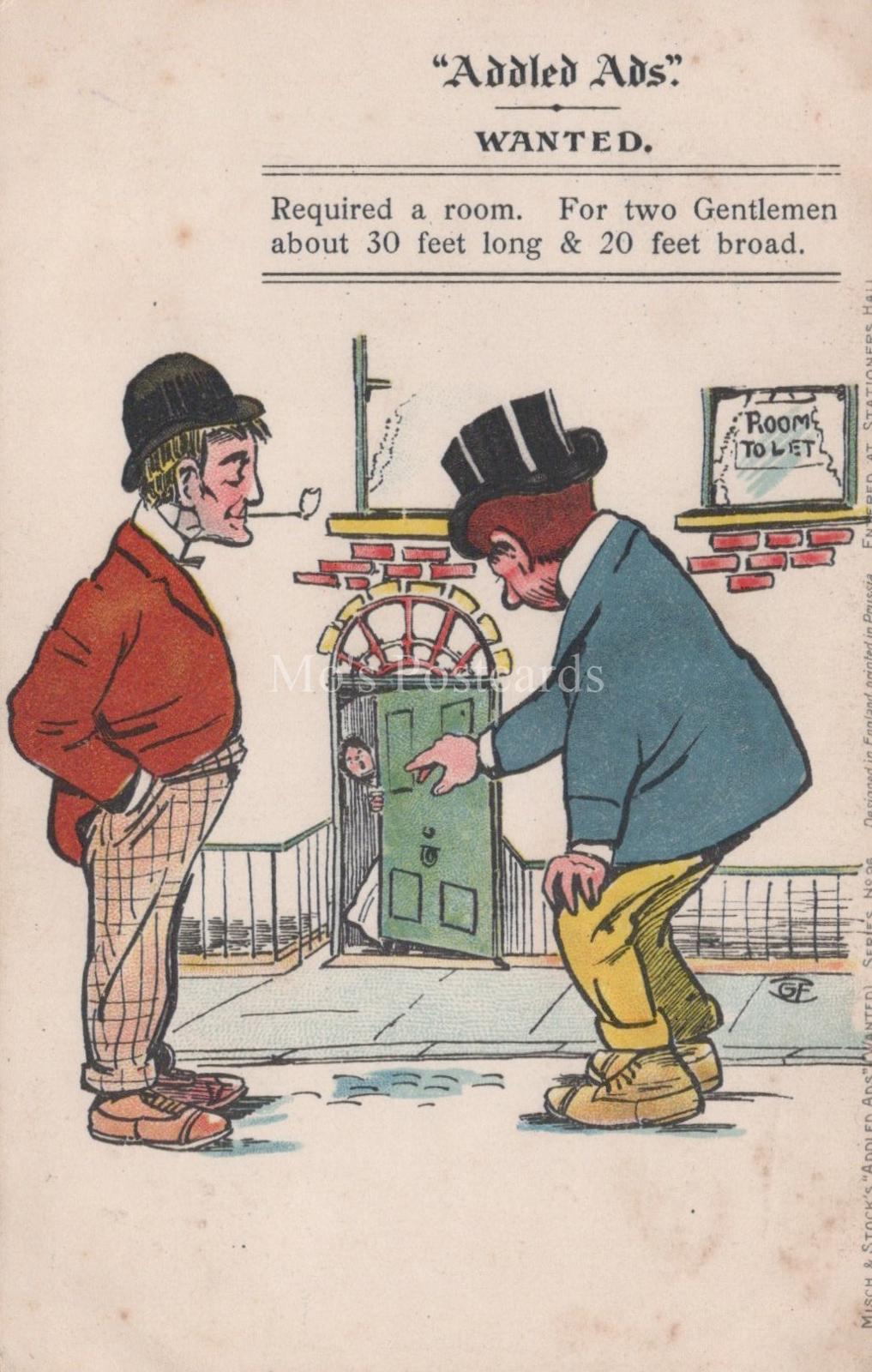Comic Postcard - Addled Ads Wanted, Rental Property, Rooms To Let XT121