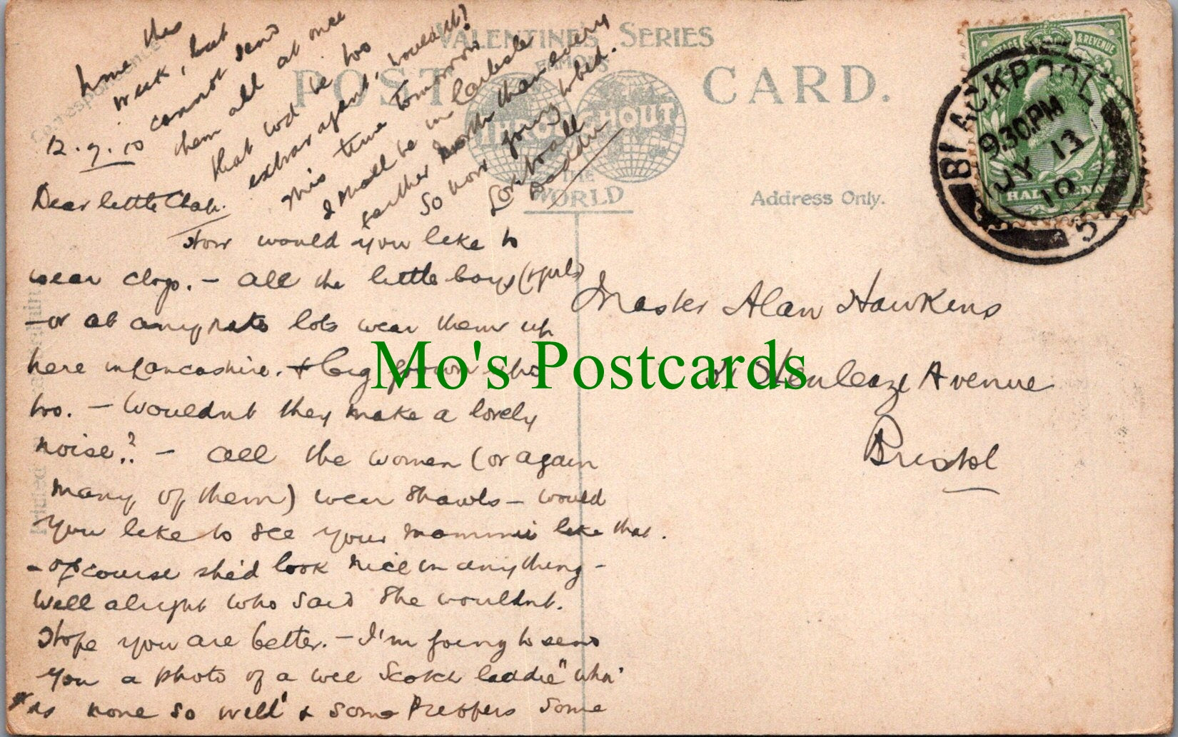 All of our postcards are posted to you inside a plastic sleeve and a board backed envelope which will be marked 'Please do not bend'. The 'Mo's Postcards' watermark does not appear on the actual postcard'.