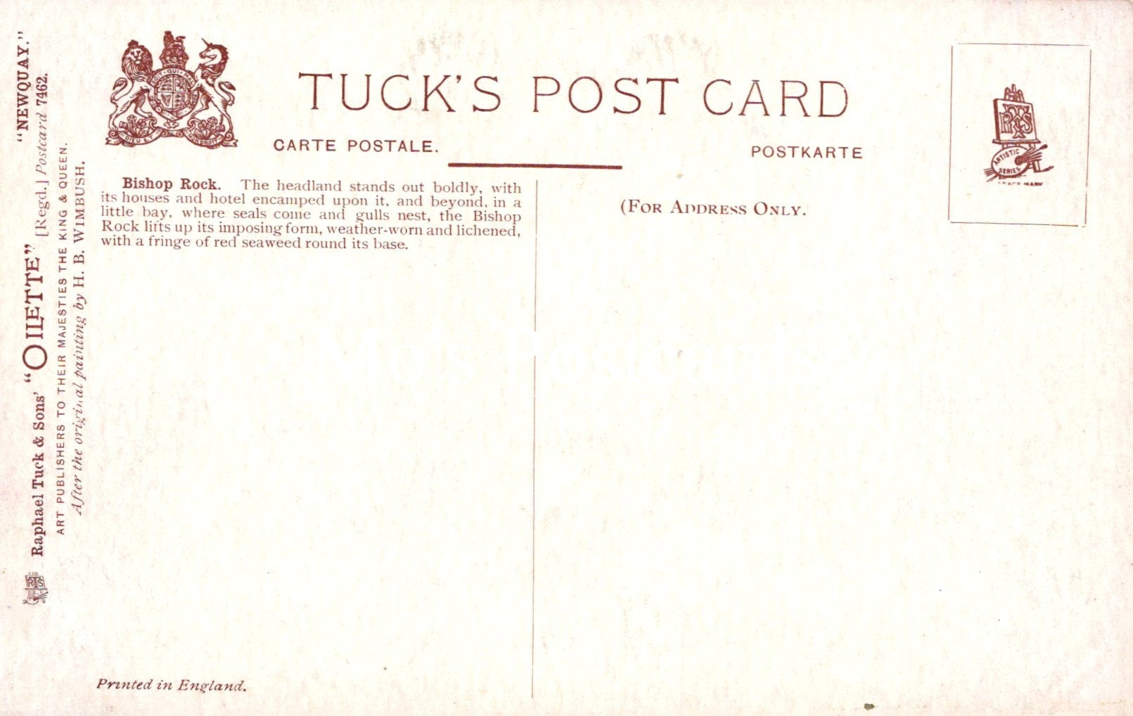 Mo's Ref: Cornwall Postcard - Newquay, Bishop Rock, Artist H.B.Wimbush SW18691