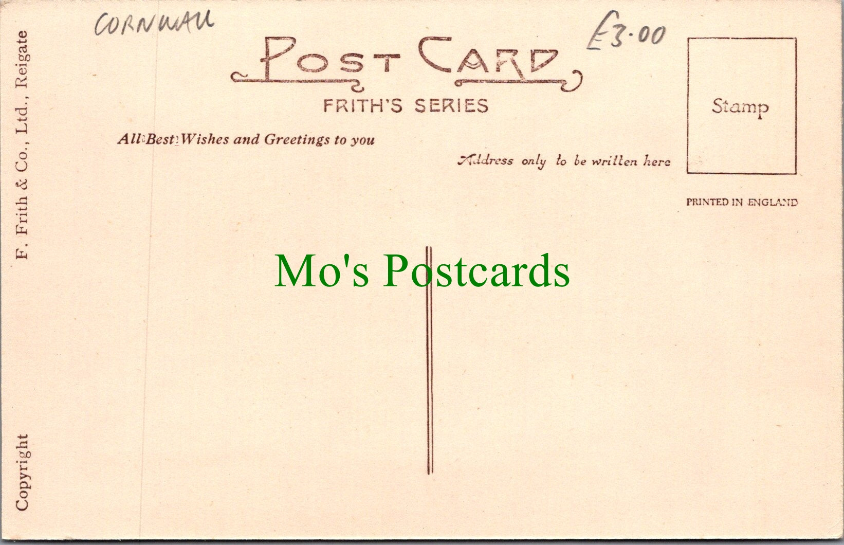 All of our beautiful postcards are posted to you inside a plastic sleeve and a board backed envelope which will be marked 'Please do not bend'. The 'Mo's Postcards' watermark does not appear on the actual postcard'.