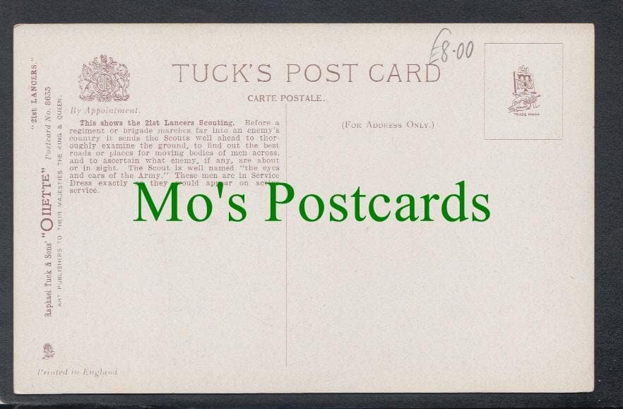 Mo's Postcards offers for sale a postcard showing a Military Postcard - 21st Lancers Scouting