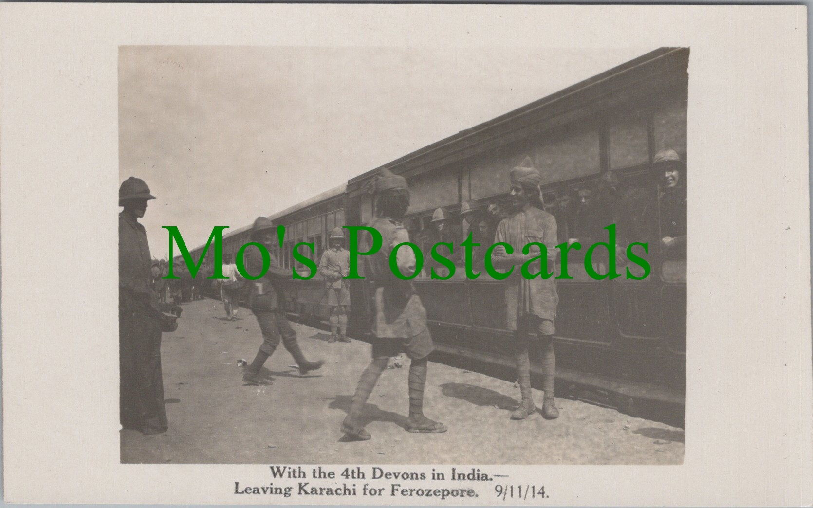This is a Military Postcard - 4th Devons in India. Leaving Karachi For Ferozepore, 9th November 1914.