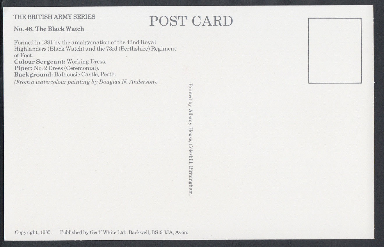 Mo's Ref:  Military Postcard - British Army Series - The Black Watch RT2288