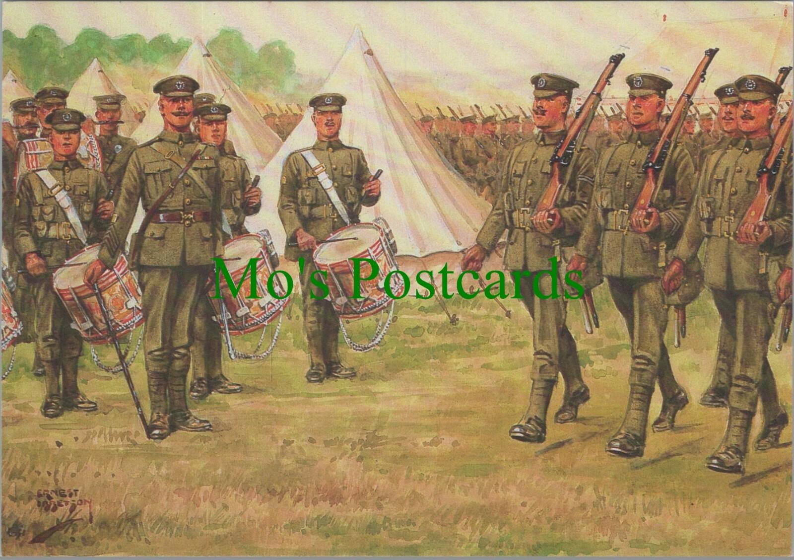 Postcard Description: Military Postcard - The Essex Regiment - "Arrival in Camp" (Modern reproduction)