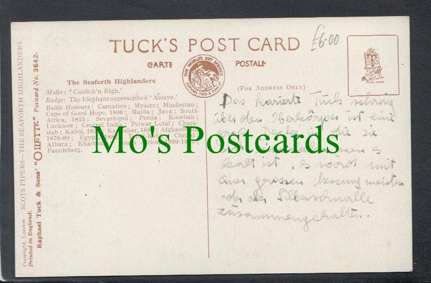 Postcard showing a Military Postcard - The Seaforth Highlanders