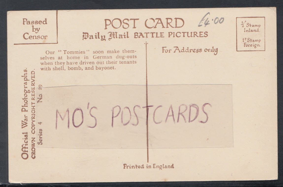 Military Postcard - "Tommy" at Home in German Dug-Outs - Mo’s Postcards