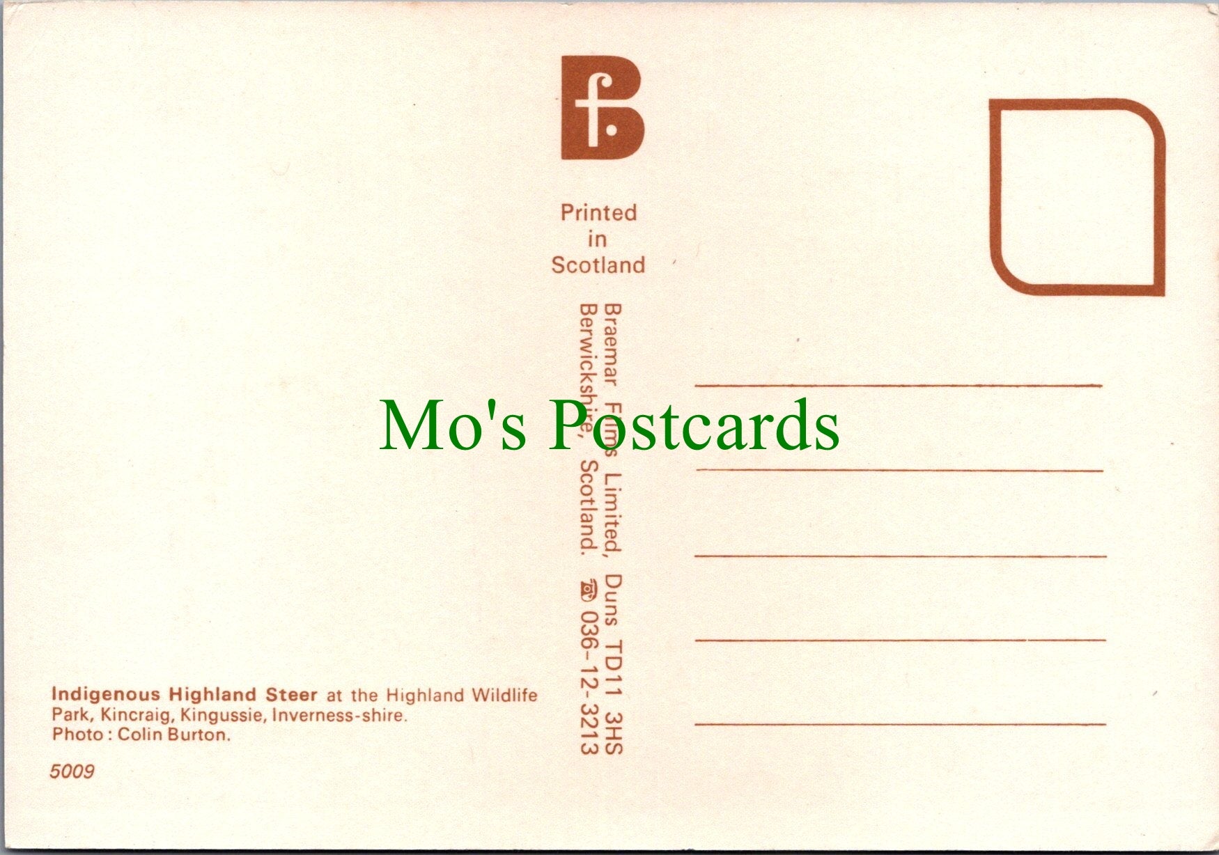 This is an Animals Postcard - A Scottish Highland Cow. Indigenous Highland Steer at The Highland Wildlife Park SW11965