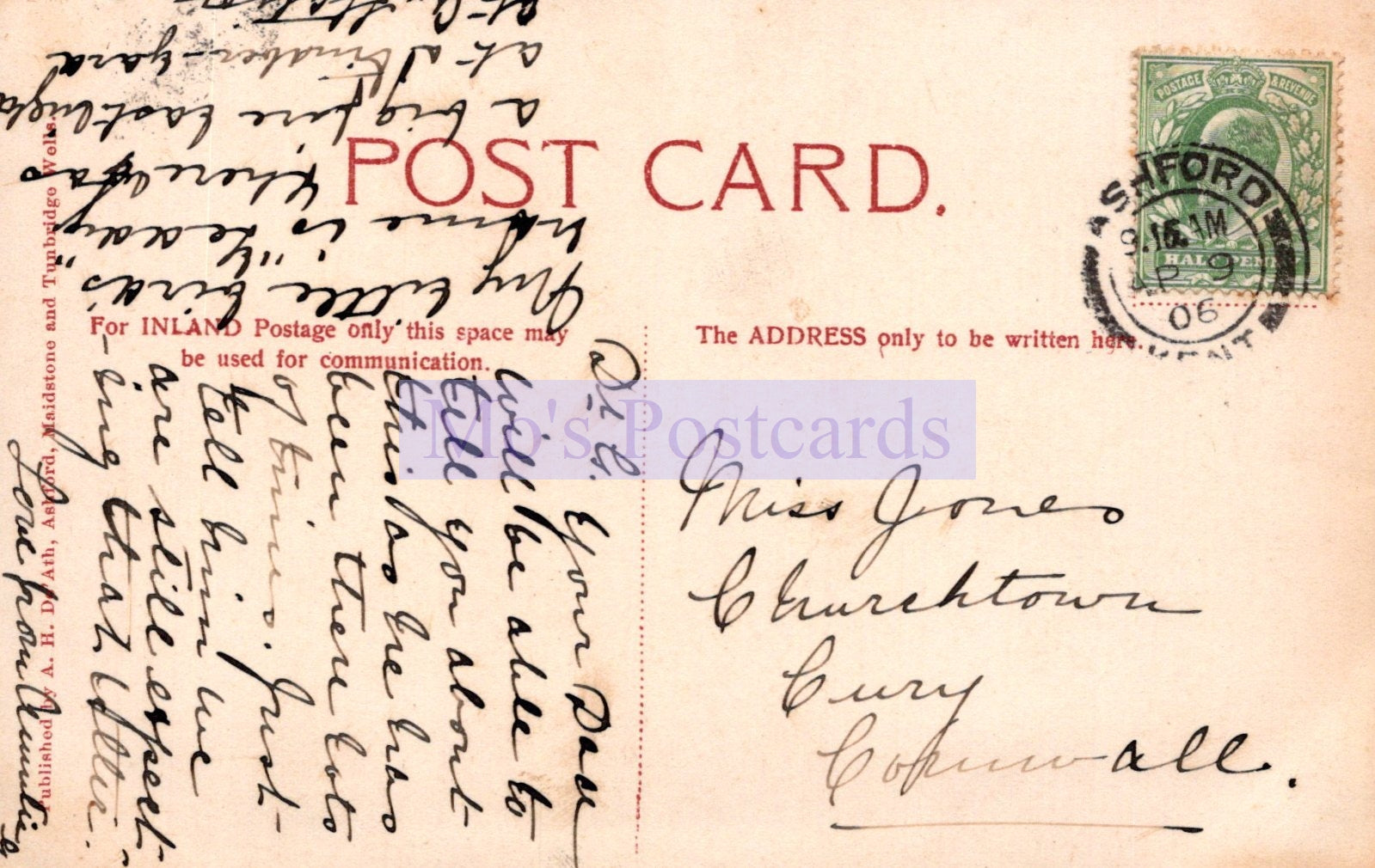 The 'Mo's Postcards' watermark does not appear on the actual postcard'.