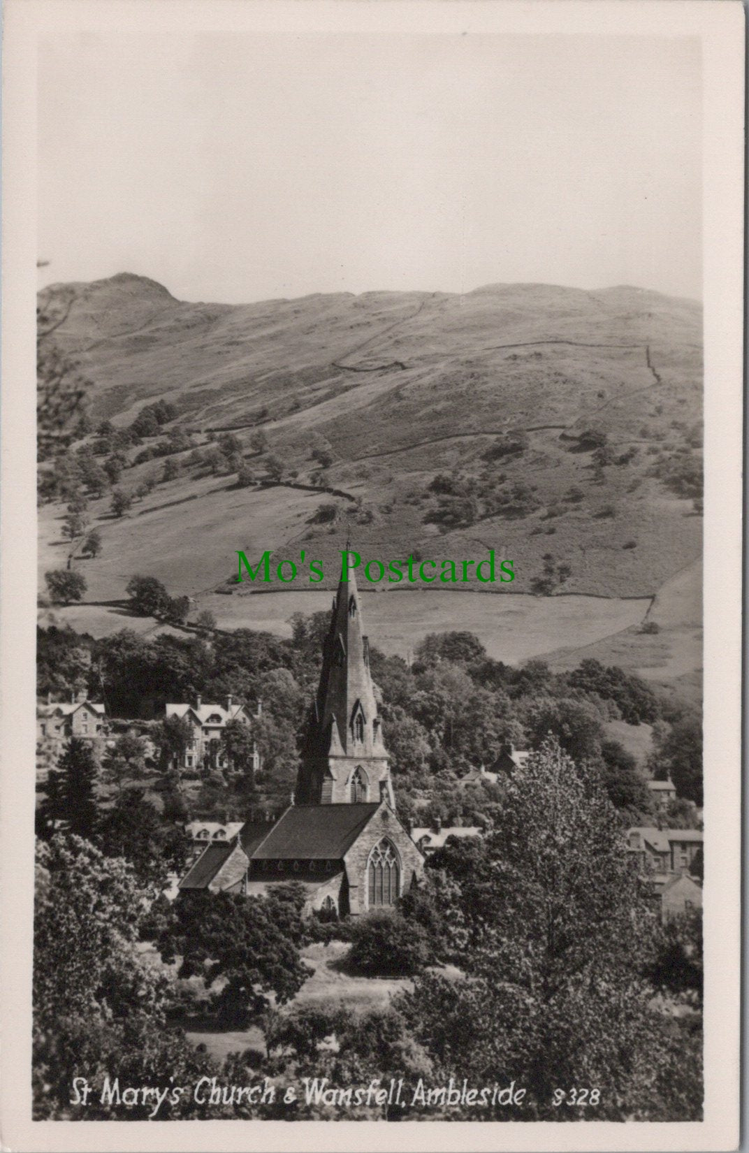 Mo's Ref: Cumbria Postcard - Ambleside, St Mary's Church & Wansfell SW10889
