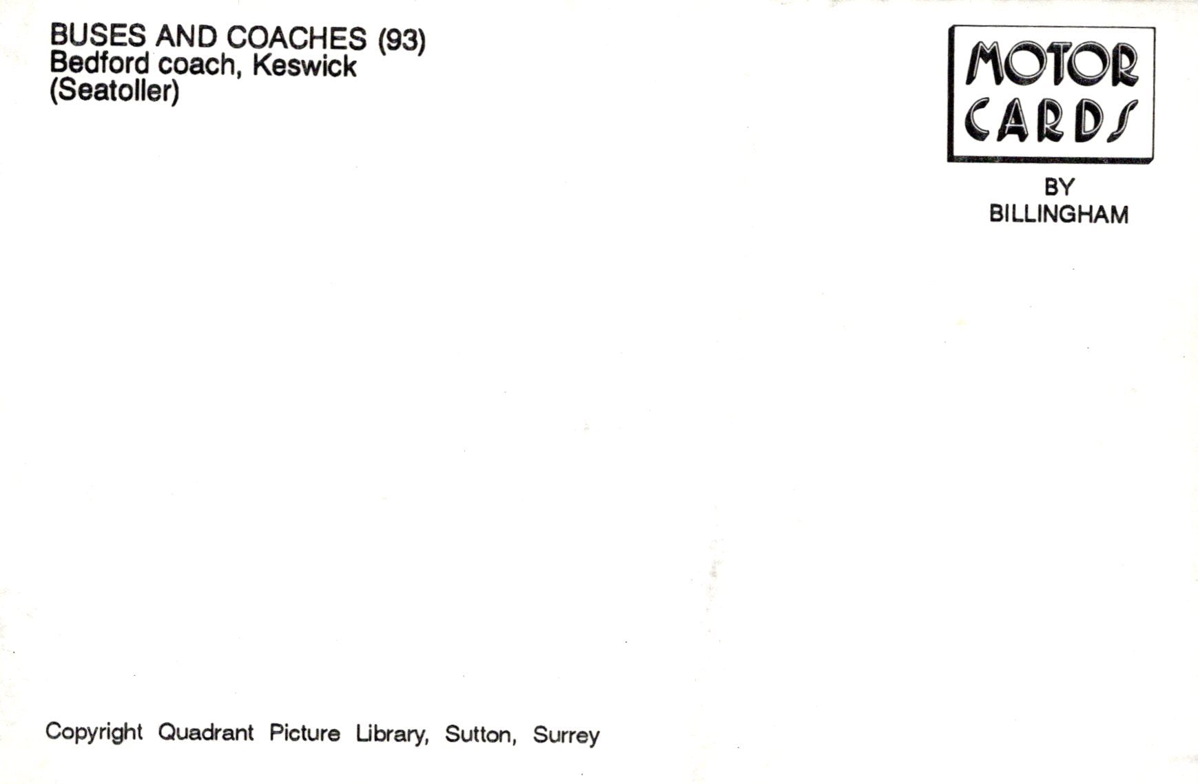 Publisher:  Motor Cards by Billingham (Modern reproduction postcard)