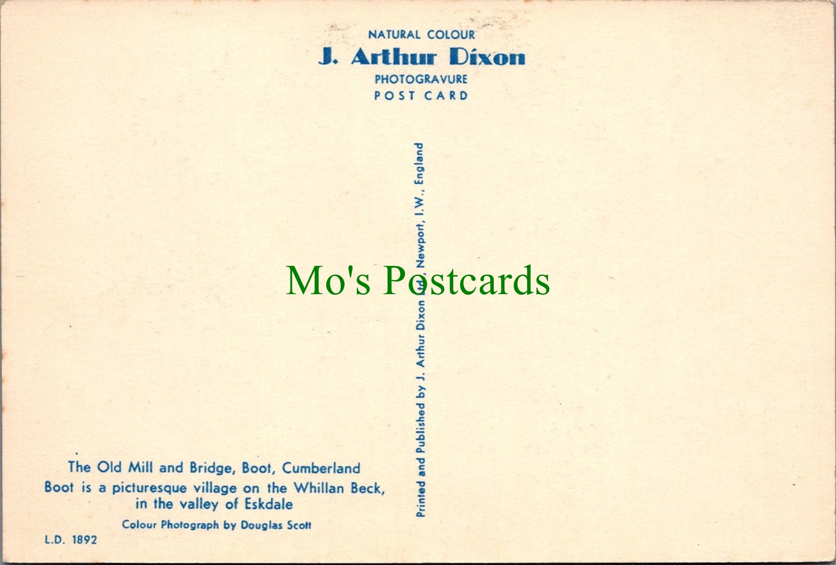 The Old Mill and Bridge, Boot, Cumbria. This is a fantastic non standard sized postcard which would be a great addition to your postcard collection. Published by J.Arthur Dixon.