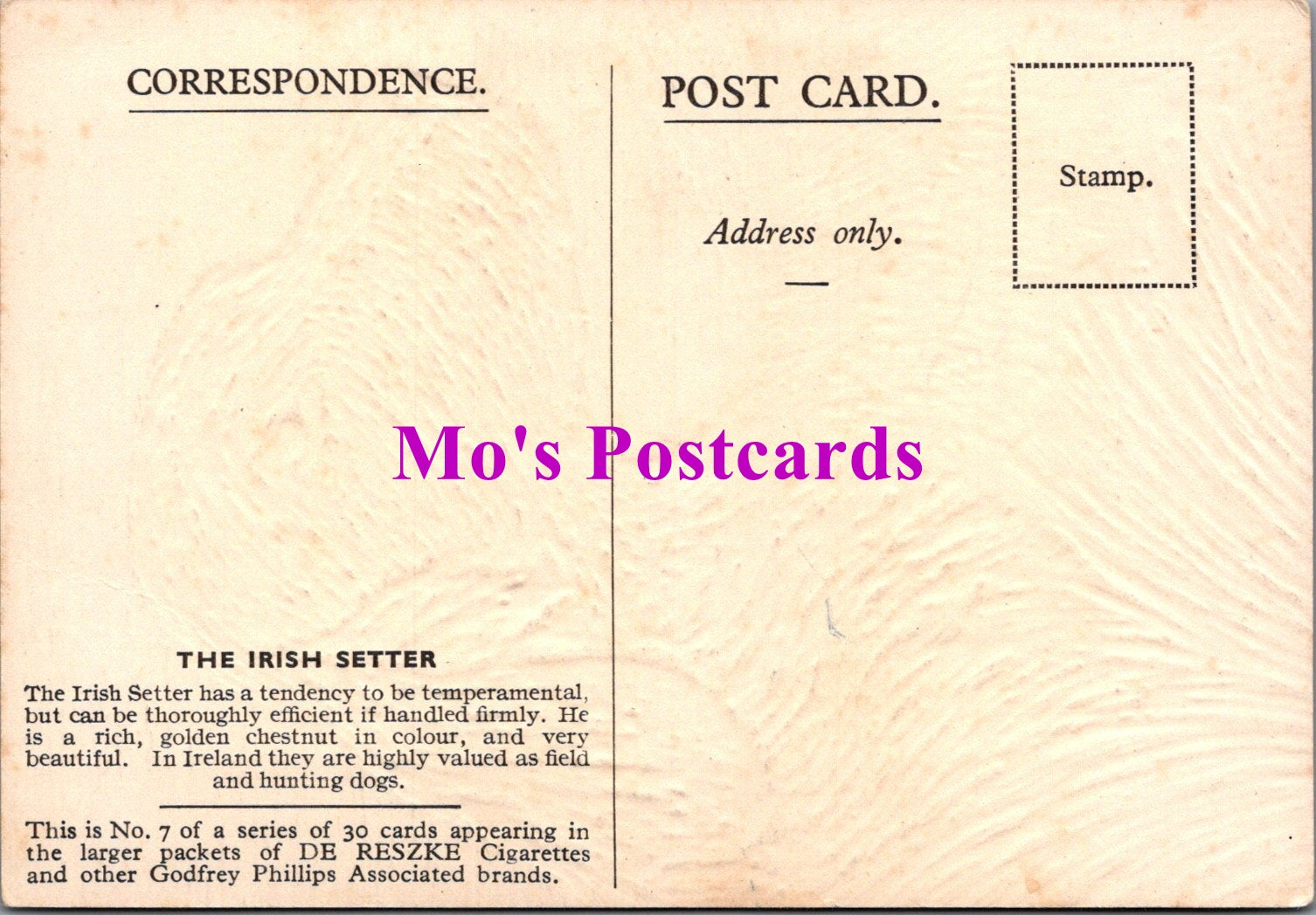 The 'Mo's Postcards' watermark does not appear on the actual postcard'.