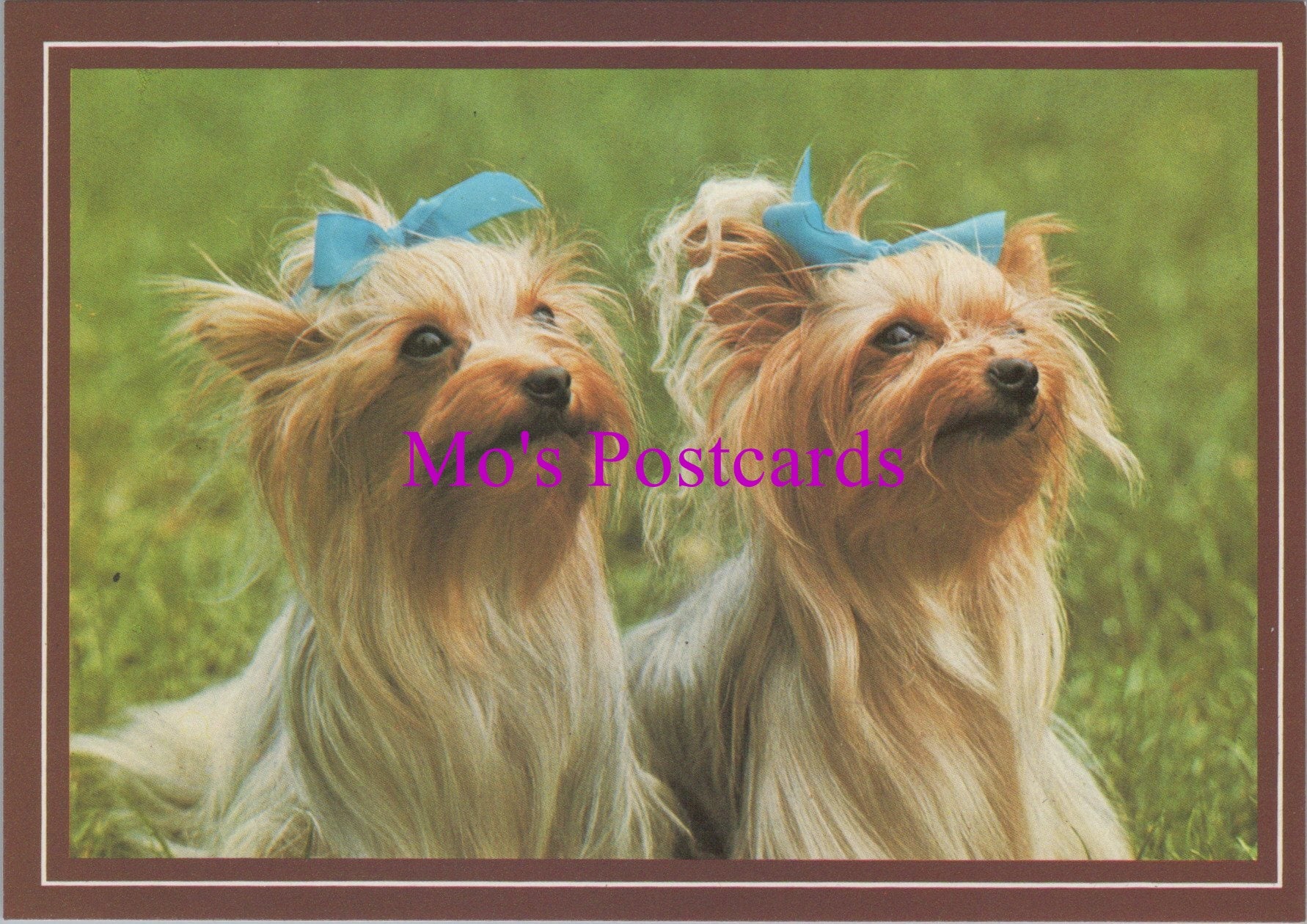 Mo's Ref: Animals Postcard - Two Cute Dogs With Blue Hair Bows SW14352