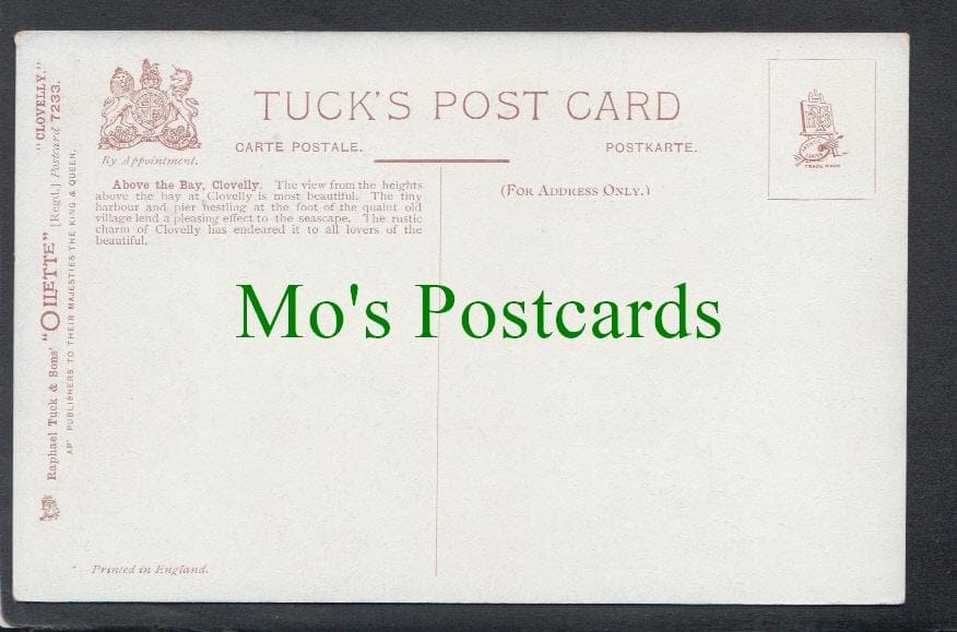 Mo's Postcards offers for sale a postcard of Above The Bay, Clovelly, Devon.