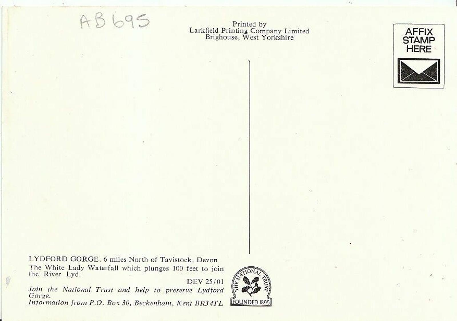 Devon Postcard - Lydford Gorge, The White Lady Waterfall AB695