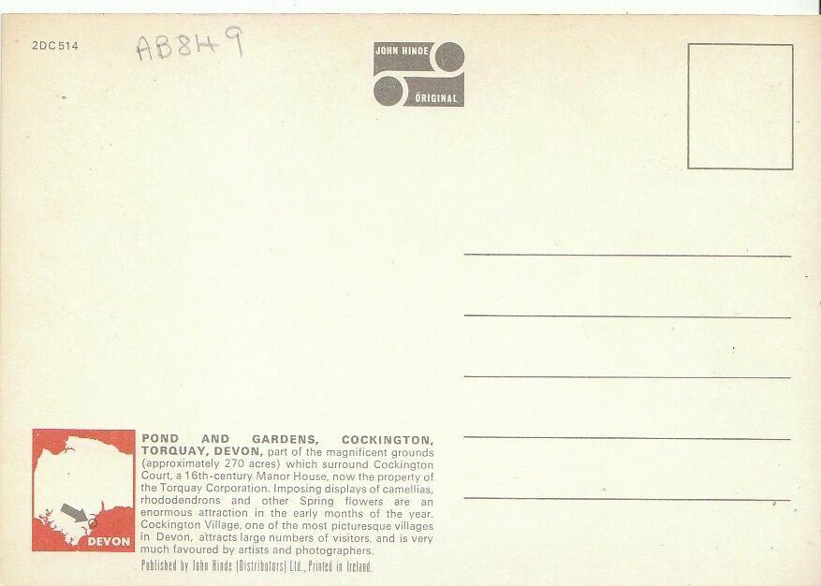 Devon Postcard - Pond and Gardens, Cockington, Torquay AB849