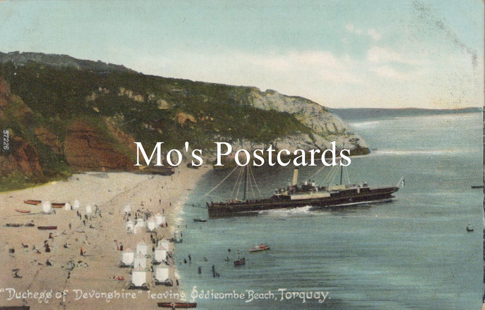 Mo's Ref:  Devon Postcard - Torquay, "Duchess of Devonshire" Leaving Oddicombe Beach SW18763
