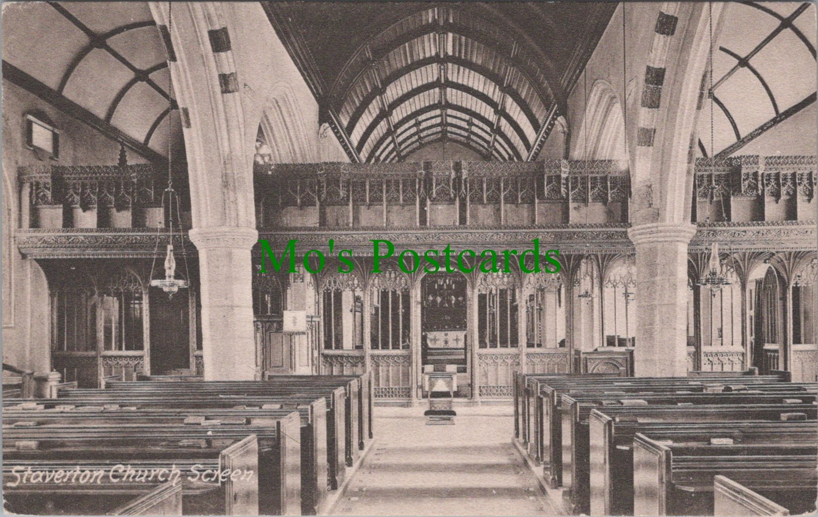 Staverton Church Screen, Devon. This is a fantastic standard sized postcard which would be a great addition to your postcard collection. Published by Frith.