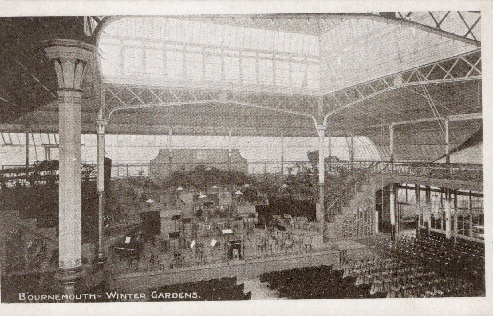 Vintage black and white photograph of Bournemouth Winter Gardens interior