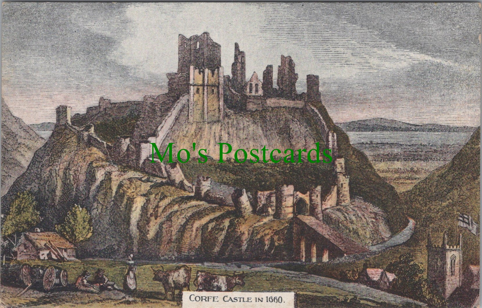 Mo's Ref:  Dorset Postcard - Corfe Castle in 1660 - SW12781