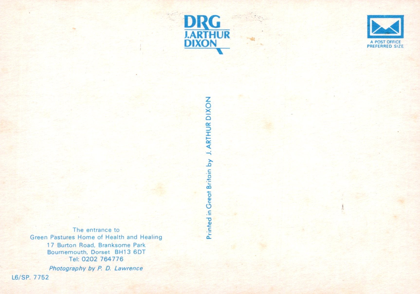 This is a Dorset Postcard - Green Pastures Home of Health and Healing, Bournemouth VT447