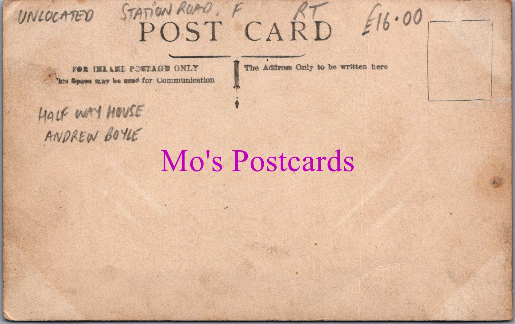 The 'Mo's Postcards' watermark does not appear on the actual postcard'.