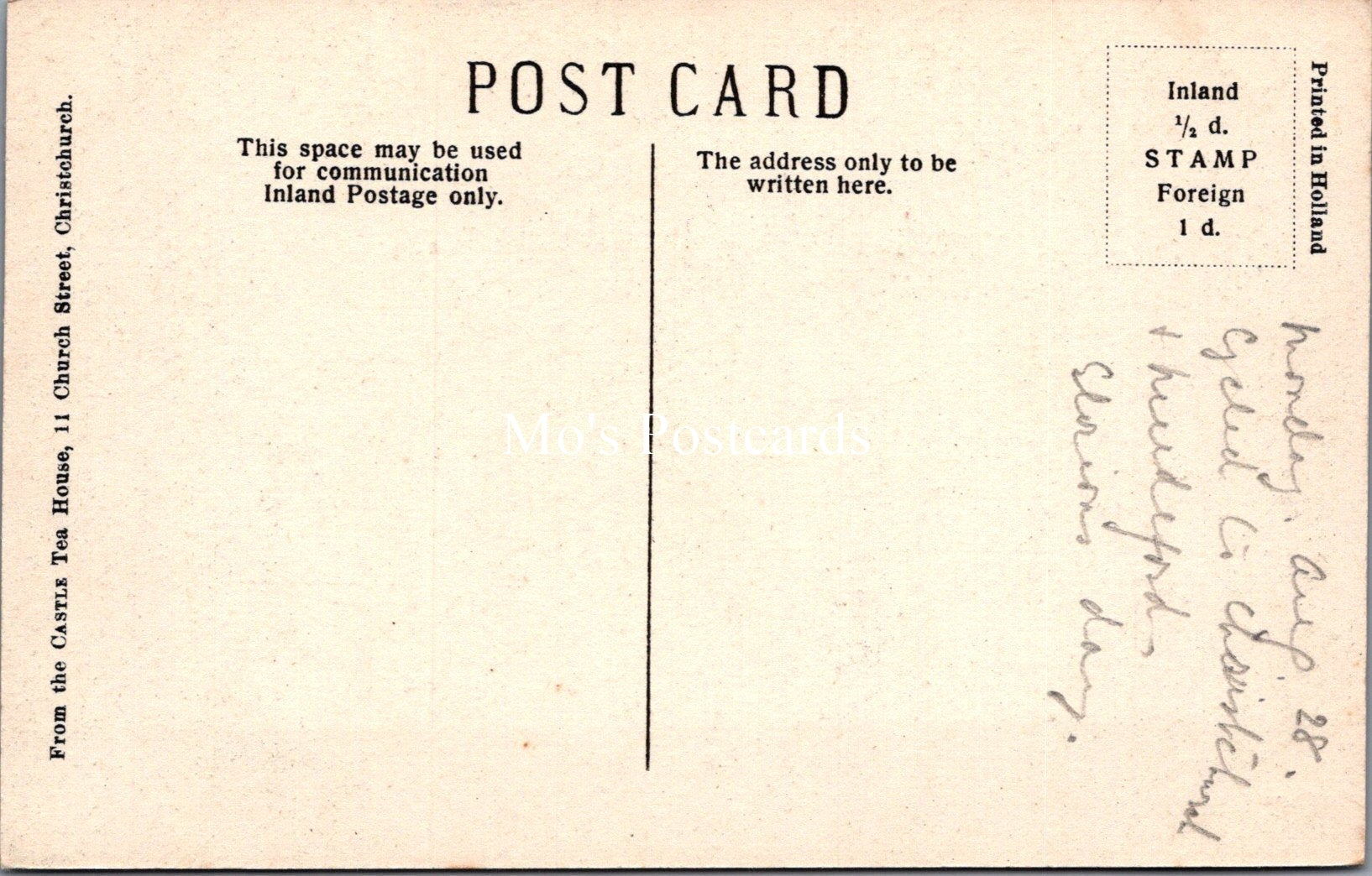The 'Mo's Postcards' watermark does not appear on the actual postcard'.