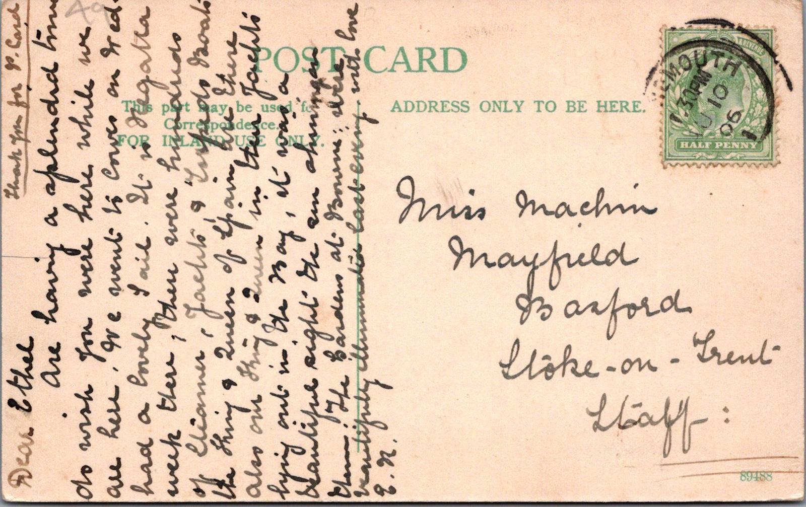 Postcard size: Standard. Posted in 1906