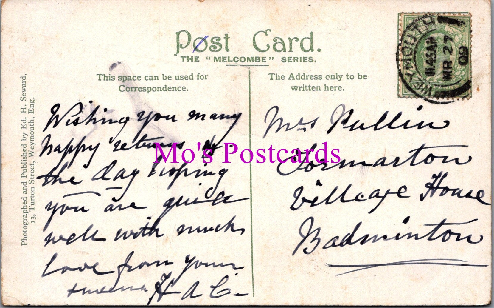The 'Mo's Postcards' watermark does not appear on the actual postcard'.