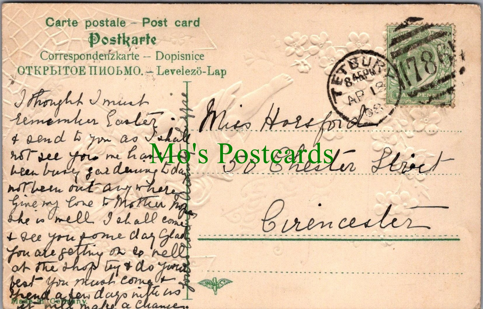 Mo's Ref: Embossed Greetings Postcard - A Happy Easter - Cherub Ref.SW10102