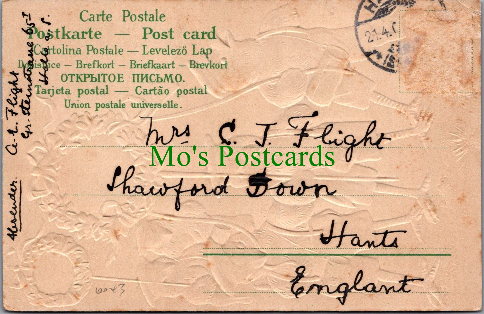 This is an Embossed Greetings Postcard - Happy Easter / Frohliche Ostern