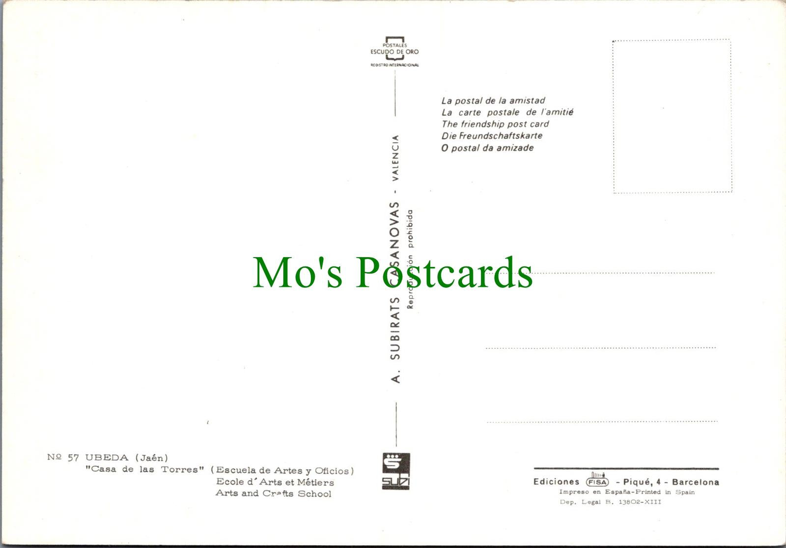 Mo's Ref:  Spain Postcard- Ubeda, Jaen - "Casa De Las Torres", Arts & Crafts School RRR1332