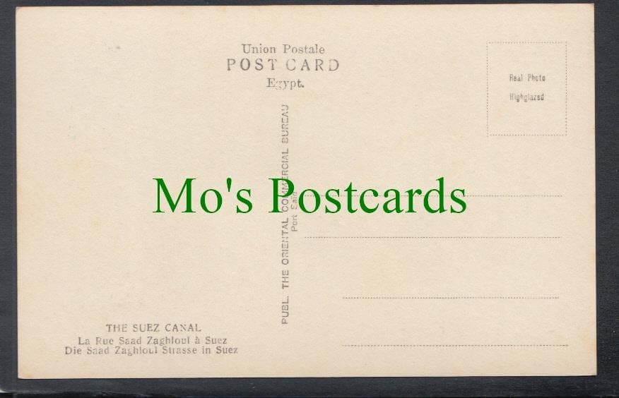 Mo's Postcards offers for sale a postcard showing Saad Zaghloul Street, The Suez Canal, Egypt