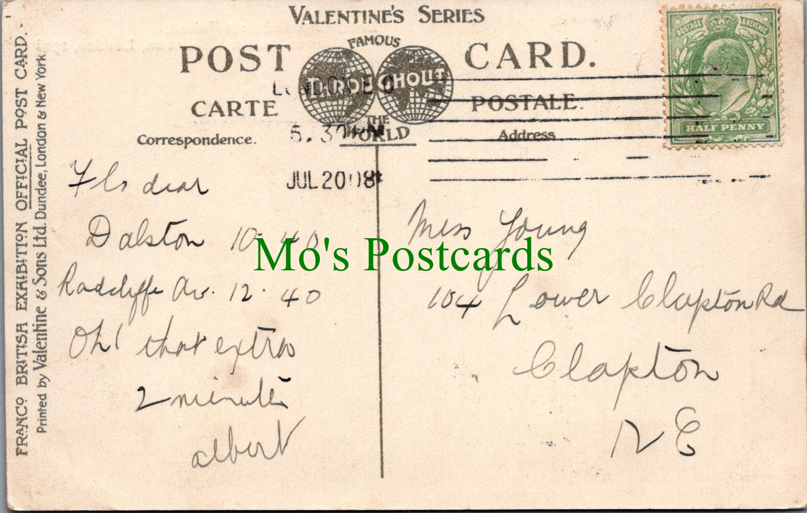 Mo's Ref: Exhibition Postcard - Franco-British Exhibition, London 1908 Ref.SW10128