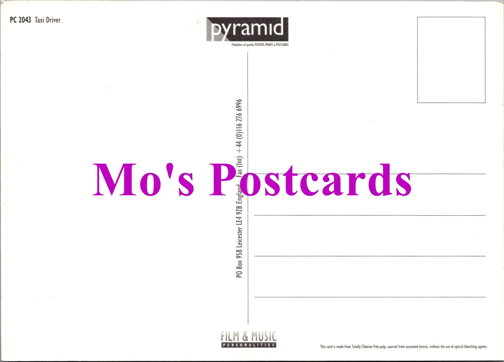 When possible all of our postcards will be posted to you inside a collectable plastic postcard sleeve and a board backed envelope which will be marked 'Please do not bend'.