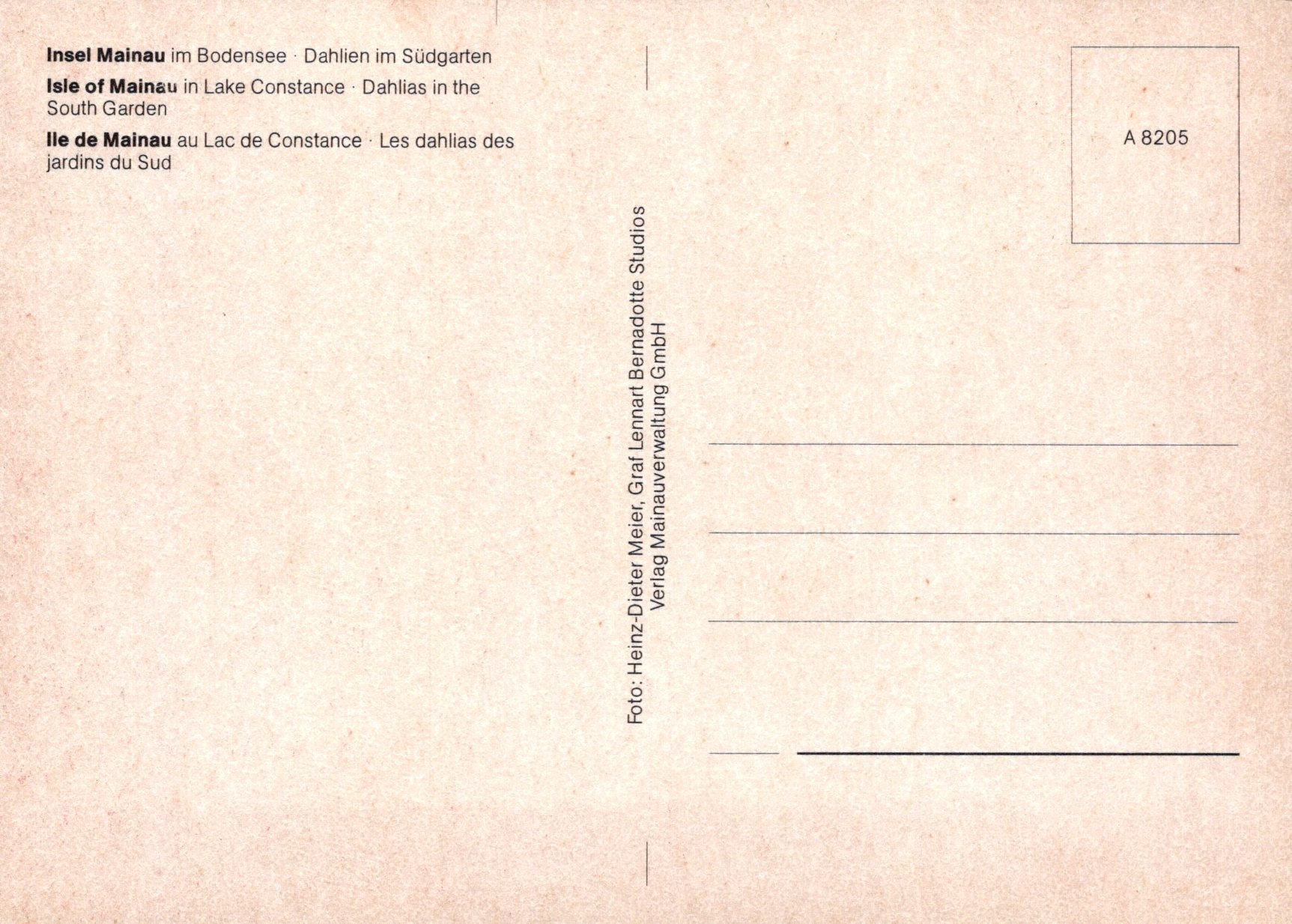 This is a Flowers Postcard - Dahlias in The South Garden, Isle of Mainau VT133