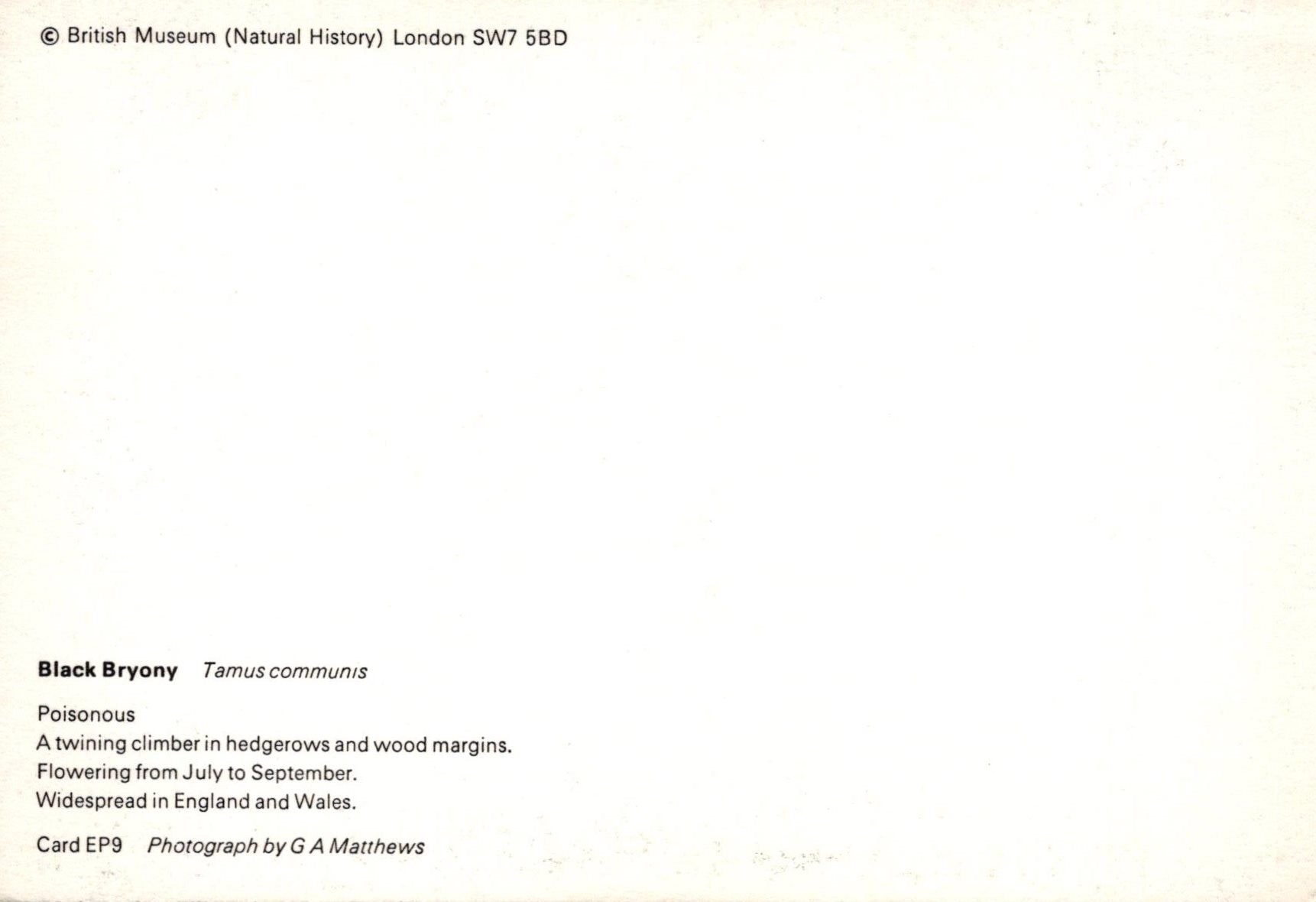 This is a Nature Postcard - Black Bryony, Tamus Communis SW20300