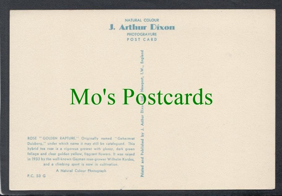 Mo's Postcards offers for sale a Nature Postcard - Flowers - Rose "Golden Rapture".