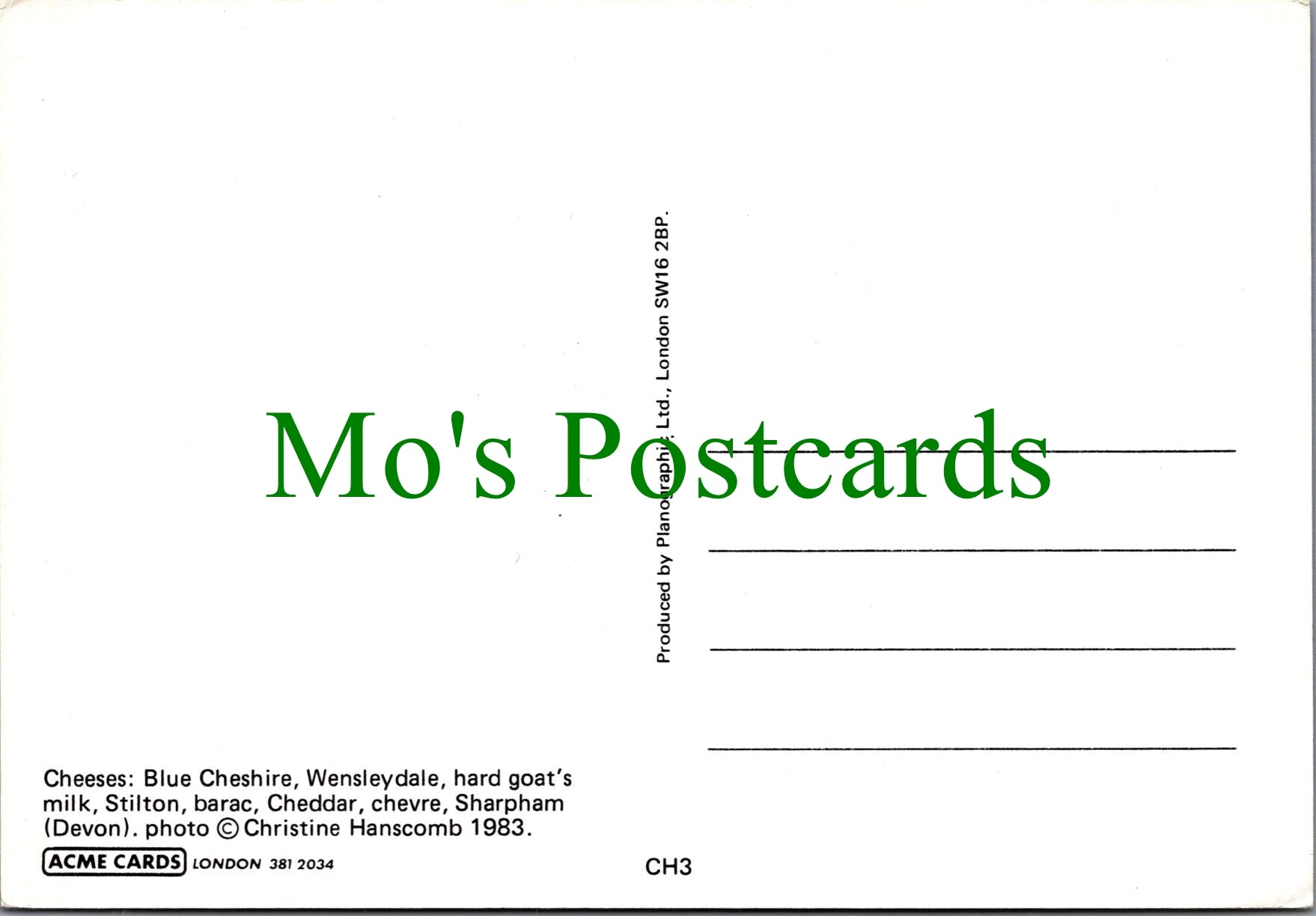 Mo's Ref: Food & Drink Postcard - Cheeses, Blue Cheshire, Wensleydale, Stilton Ref.SW10244