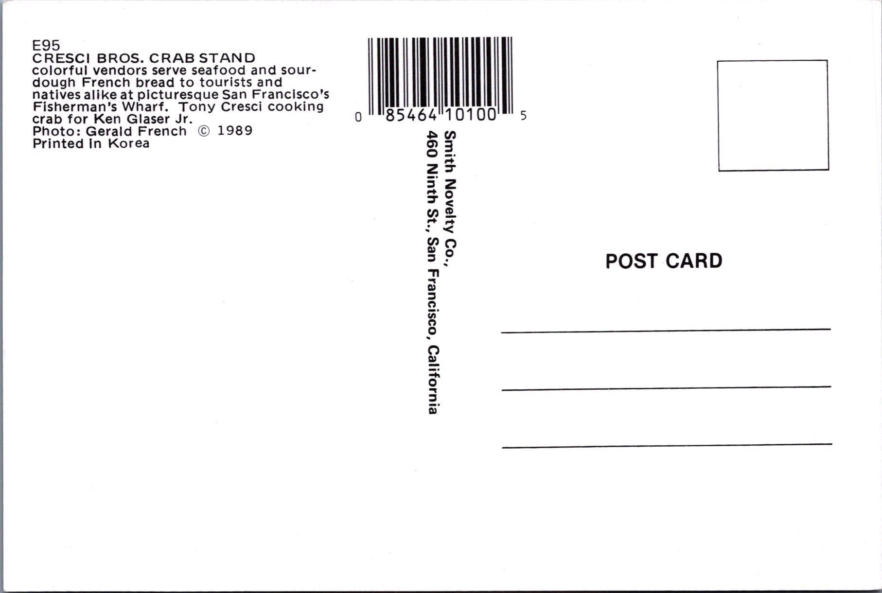 Mo's Ref:  Food Postcard - Cresci Bros, Crab Stand, Fisherman's Wharf, San Francisco Ref.SW10008